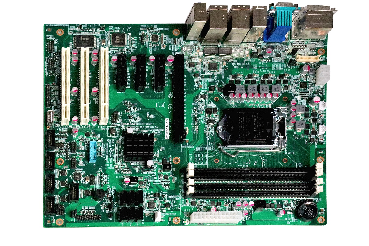 板載7個標準PCI/PCIe插槽:1*PCIe-X16、3*PCIe-X4、3*PCI